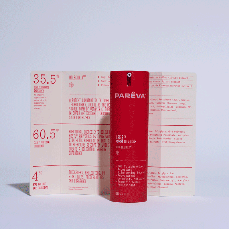 - Step 1 Prevent C35.5TM Firming Glow Serum (0.5 oz): Infused with 35.5% blend of vitamin C, turmeric, resveratrol and Molecur 3TM, this anhydrous serum brightens dull skin, lifts skin and delivers a firmer, more even complexion.